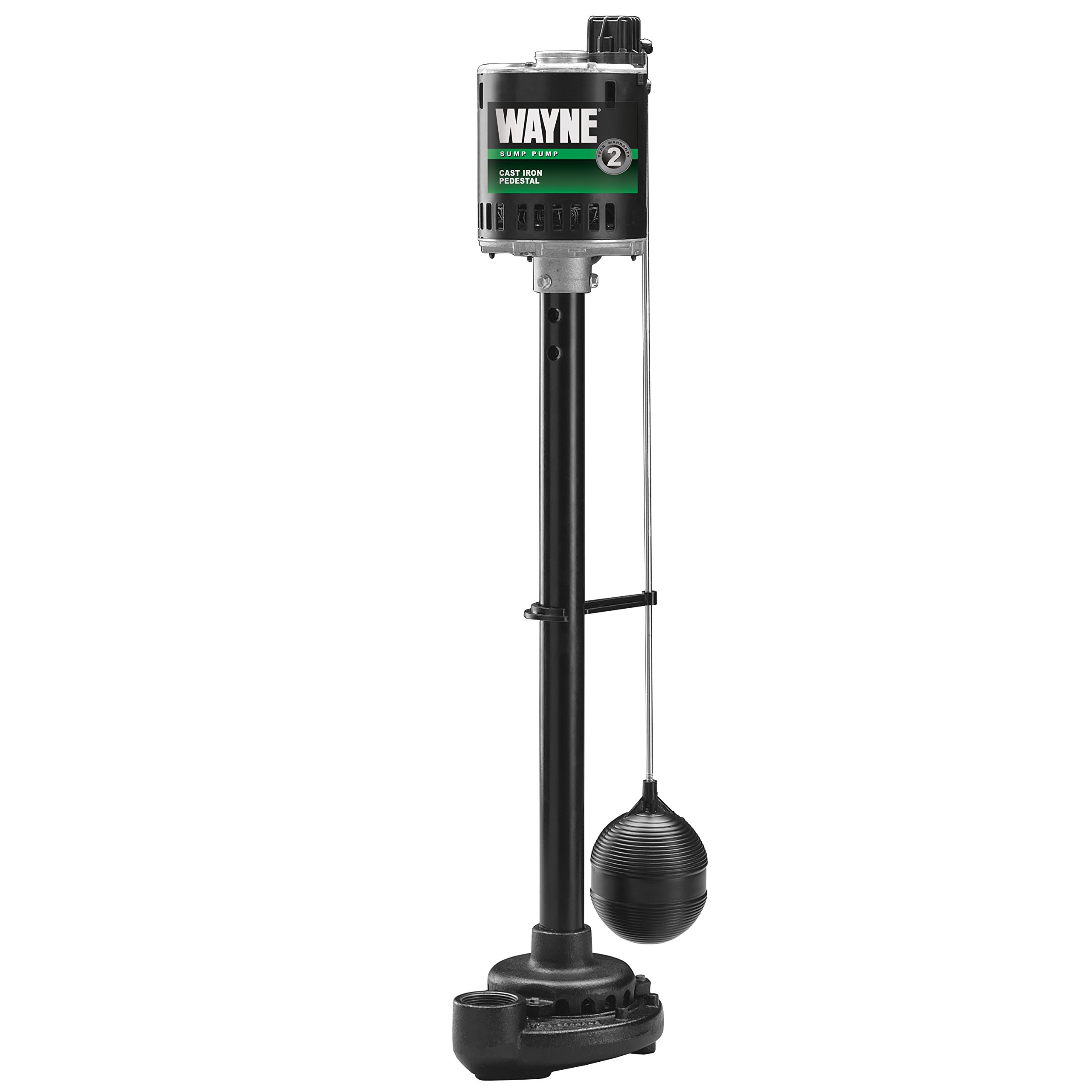 The Wayne SPV500 is a 1/3 HP pedestal sump pump designed for residential dewatering applications. It features a cast iron pump housing, a coated steel column, and a 1-1/2 inch NPT discharge for reliable performance.