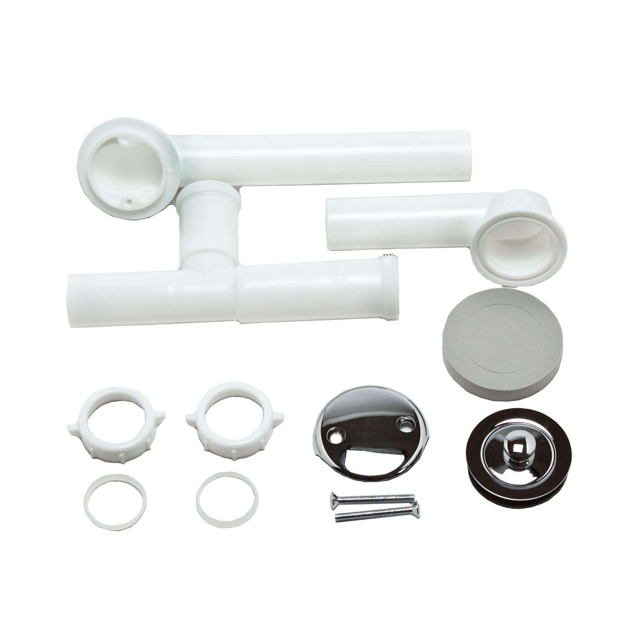 This manual provides instructions for the installation, operation, and maintenance of your Moen 90530 Tub/Shower Assembly with Lift-N-Drain. This assembly is designed for bathtubs from 14-inch to 16-inch deep and features a 1-1/2-inch threaded shoe and PVC plastic T. The chrome finish offers a highly reflective, mirror-like appearance, complementing various bathroom styles.
