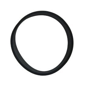 Image: A new Dirt Devil Style 9 flat drive belt, black and elastic, ready for installation. This belt connects the motor to the brush roll, enabling the brush to spin and agitate carpet fibers.