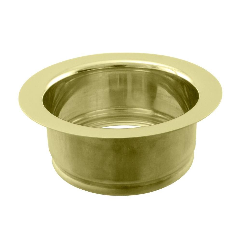 The Westbrass D208-01 is a 4-1/4 inch standard kitchen sink waste disposal flange designed for use with garbage disposal units. This flange is crafted from solid brass and features a polished brass finish, providing both durability and a decorative appearance for your kitchen sink.