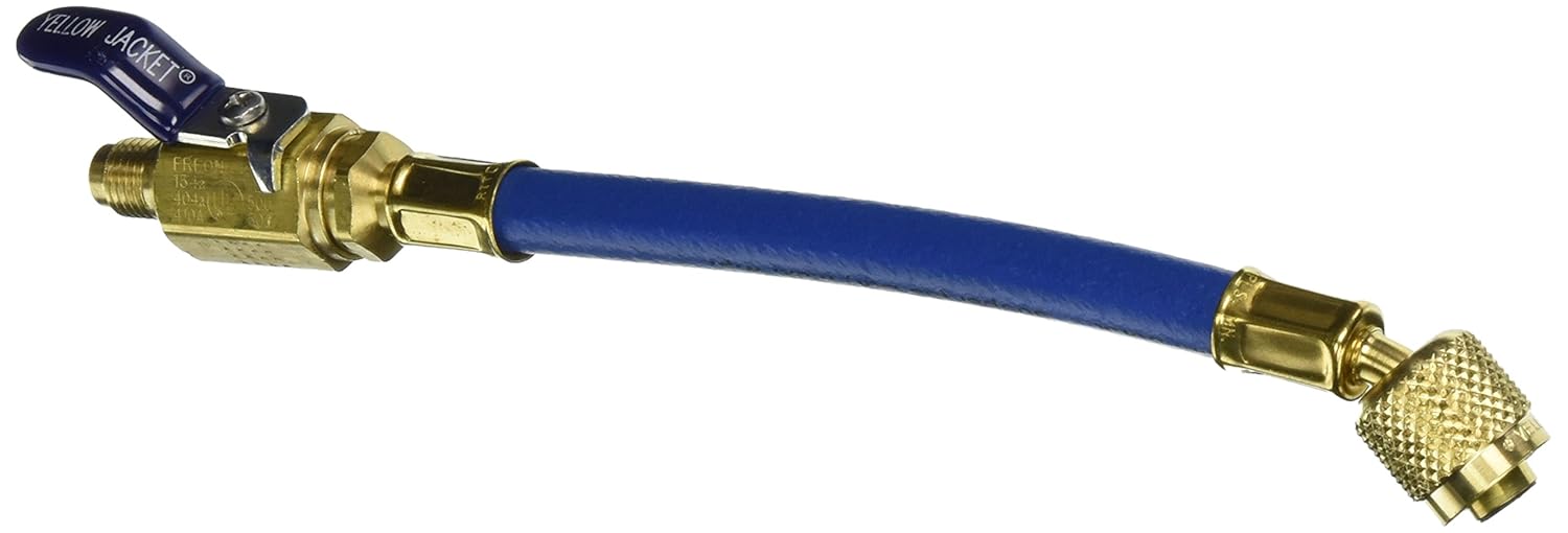The Yellow Jacket 25202 1/4" Blue Flexflow Adapter is designed to provide an easy retrofit solution for existing PLUS II hoses, incorporating ball valve capabilities. This adapter enhances flexibility and control in tight working areas, making it a valuable component for various industrial and scientific applications.