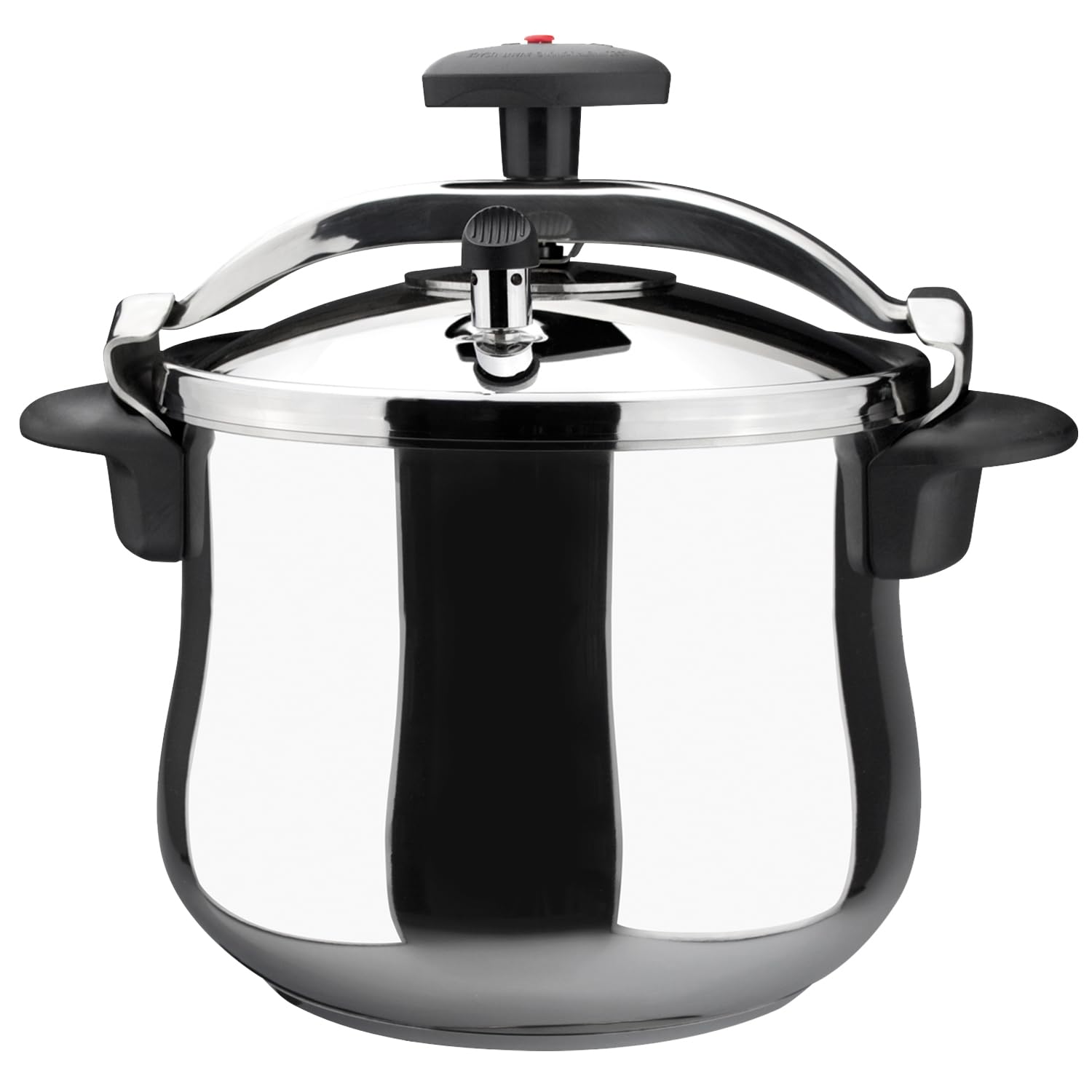 The MAGEFESA Star Belly Pressure Cooker is crafted from durable 18/10 stainless steel, designed for efficient and healthy cooking. Its rounded bottom and 5-layer encapsulated thermo-diffuser base ensure rapid and uniform heat distribution, making it compatible with all stovetops, including induction.