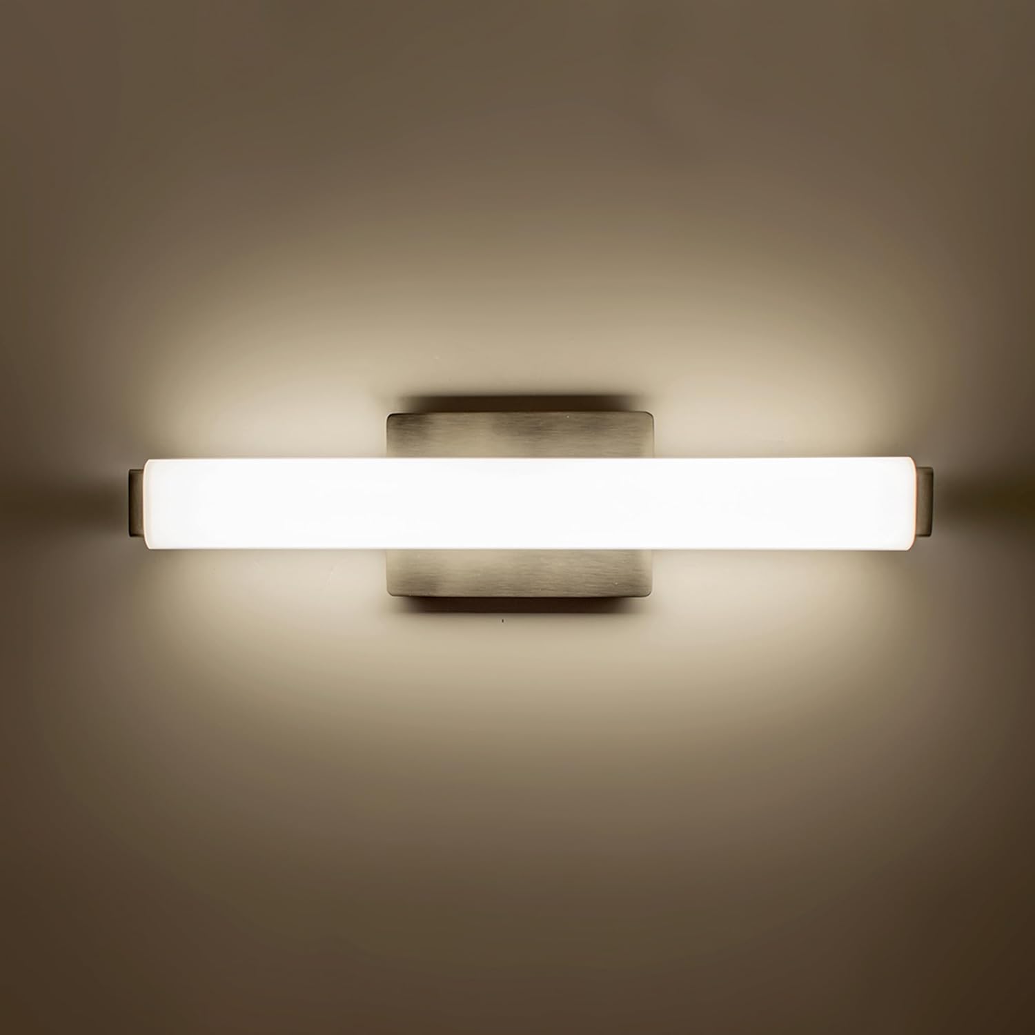 Image: Modern Forms Vogue 20in LED Vanity Light shown installed horizontally, emitting a warm, even light.