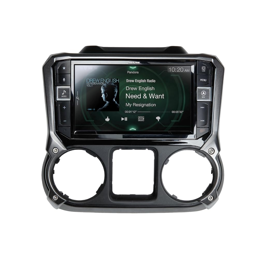 This manual provides essential information for the installation, operation, and maintenance of your Alpine i209-WRA 9-inch Restyle Dash System. Engineered specifically for 2011-2018 Jeep Wrangler JK models, this mech-less AM/FM/Bluetooth system features a 9-inch WVGA capacitive touchscreen and a custom dash bezel. The i209-WRA is designed with a weatherproof touch screen and bezel, rated at IP53, offering protection against dust and fresh water spray. It supports both Apple CarPlay and Android Auto for seamless smartphone integration.