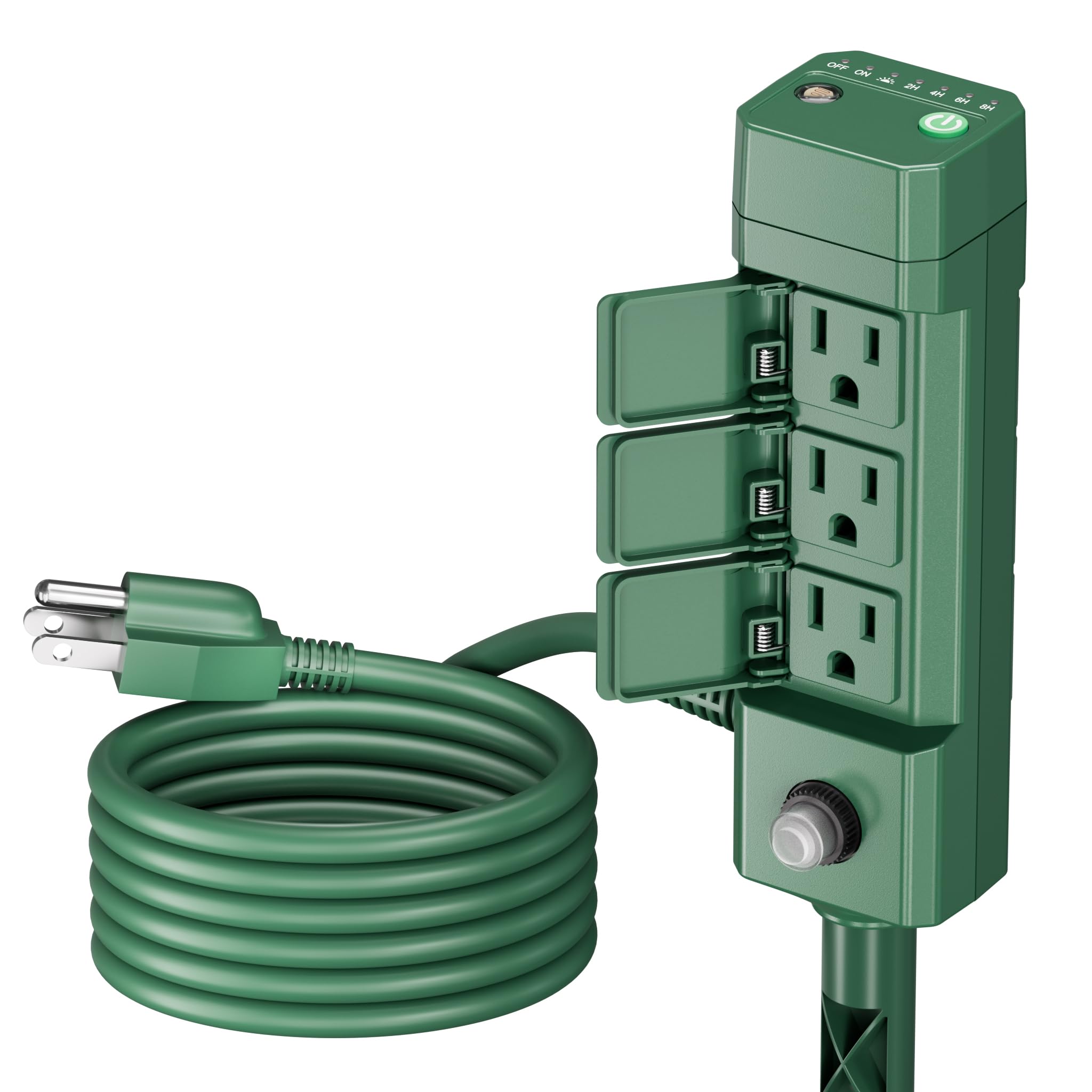 - Dusk + 2H/4H/6H/8H Countdown: The outlets will turn on automatically at dusk and remain on for the selected duration (2, 4, 6, or 8 hours), then turn off.