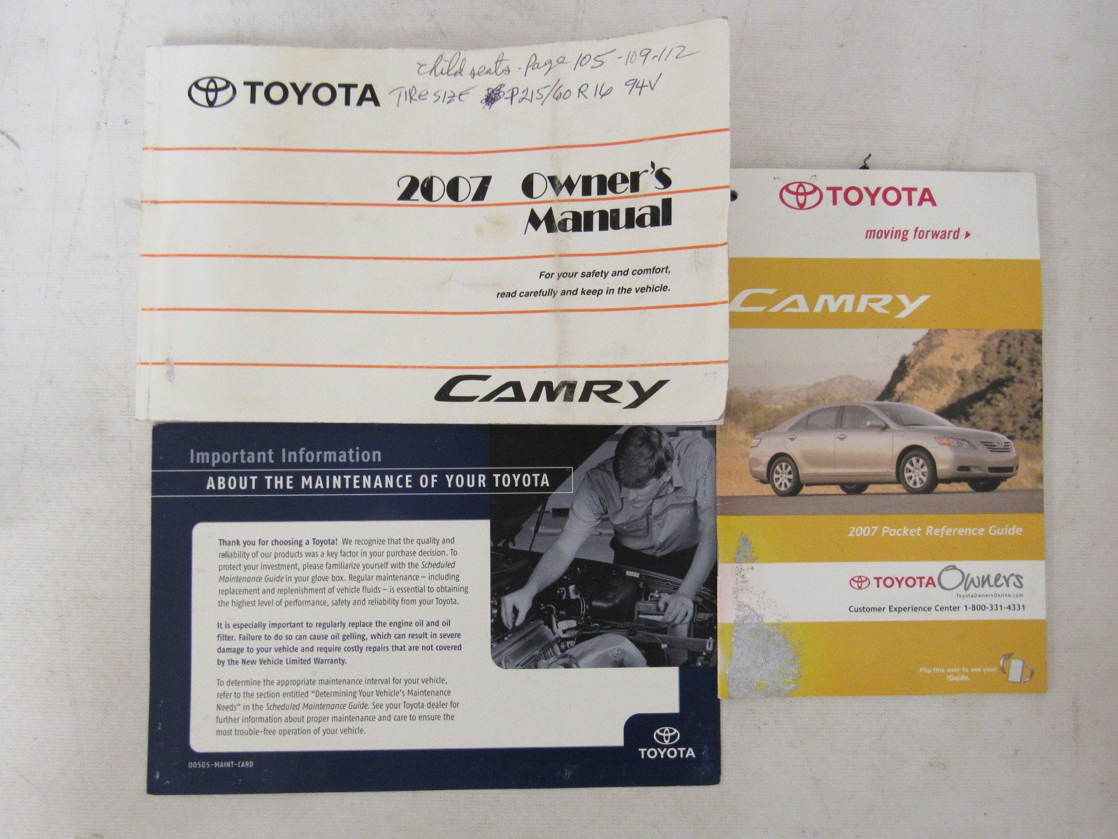 The "2007 Pocket Reference Guide" image shows "Toyota Owners" and "Customer Experience Center 1-800-331-4331", which is a direct support contact.