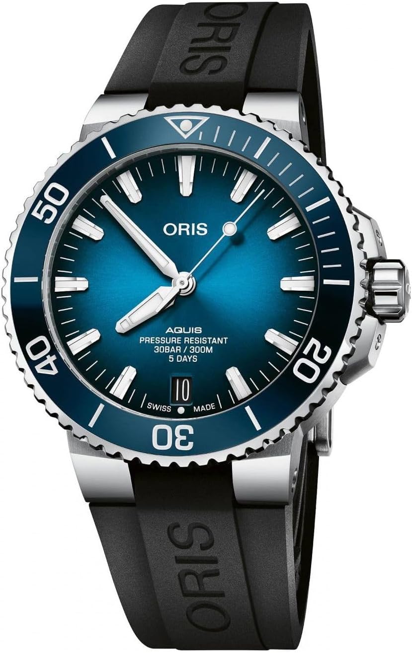 - Resistència a l'aigua: The Oris Aquis Date Calibre 400 is water-resistant to 300 meters (1000 feet). This makes it suitable for swimming, snorkeling, and professional diving. Always ensure the crown is fully screwed down before exposing the watch to water. Do not operate the crown or pushers (if any) underwater.