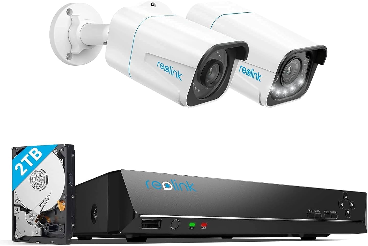 - 1x REOLINK RLN8-410 NVR with pre-installed 2TB HDD and accessories (power adapter, USB mouse, HDMI cable, network cable).