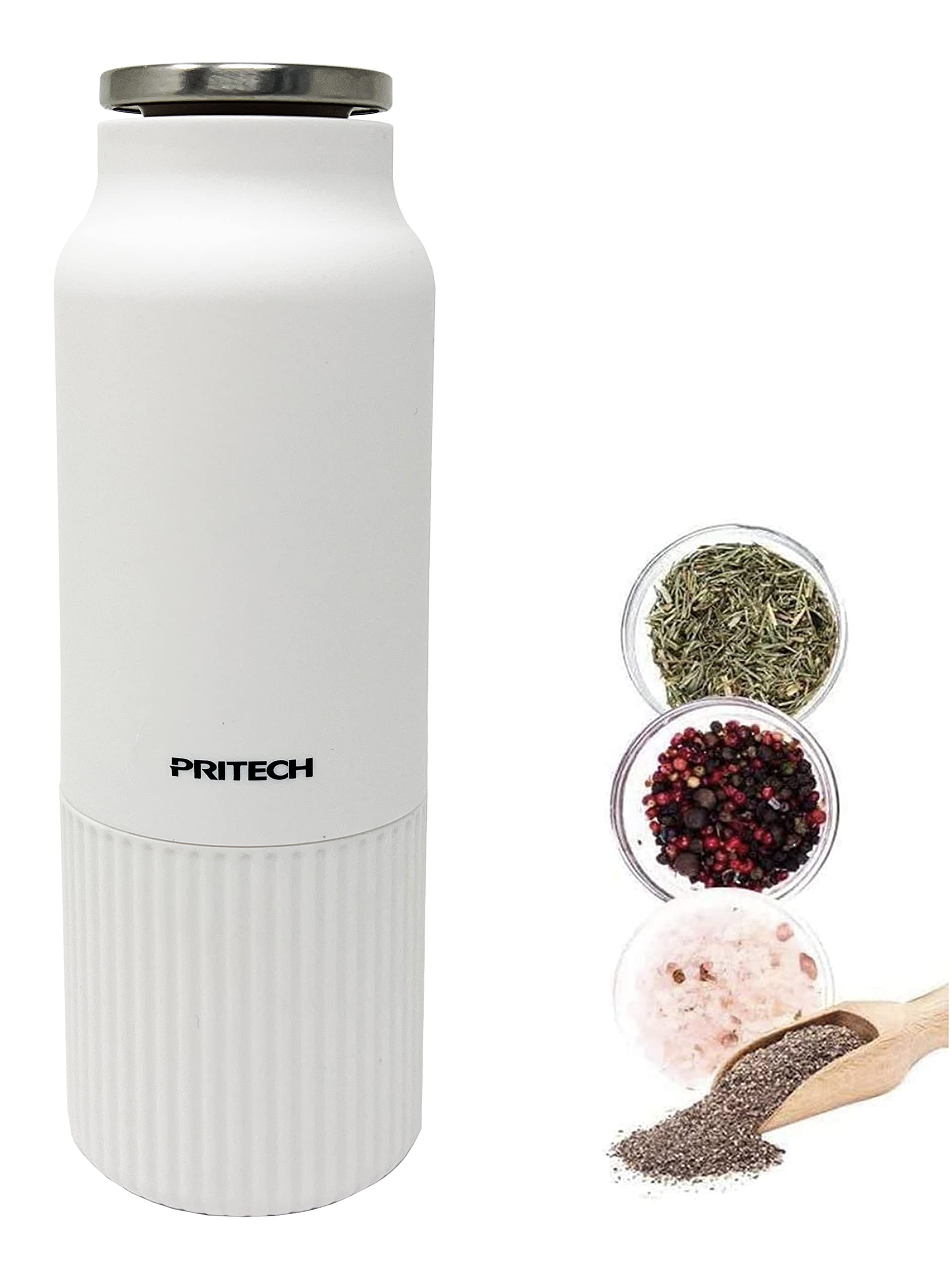The PRITECH Manual Salt and Pepper Grinder is designed for grinding various spices, including peppercorns, sea salt, and Himalayan salt. Its manual operation and adjustable grinding mechanism allow for precise control over coarseness, from fine to coarse.