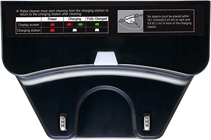 - Indicador de llum d'estat: The charging station may feature a status light indicator to show its operational status. Refer to your robot vacuum's manual for specific light patterns and their meanings regarding charging status.