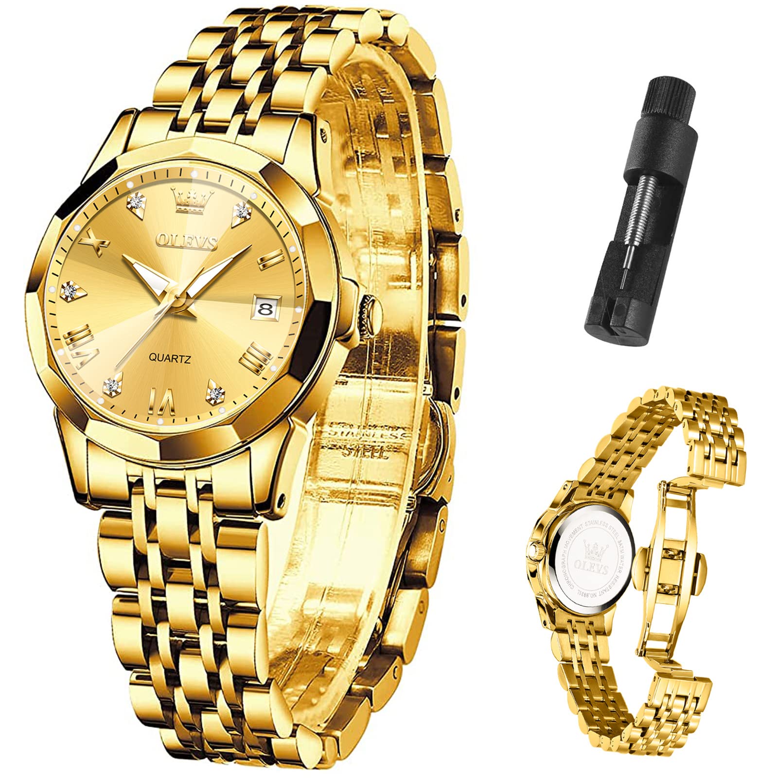 Thank you for choosing the OLEVS Women's Gold Stainless Steel Quartz Watch. This timepiece combines elegant design with reliable quartz movement, featuring a delicate diamond dial, a durable gold-toned stainless steel strap, and a convenient date function. This manual provides essential information for setting up, operating, maintaining, and troubleshooting your watch to ensure its longevity and optimal performance.