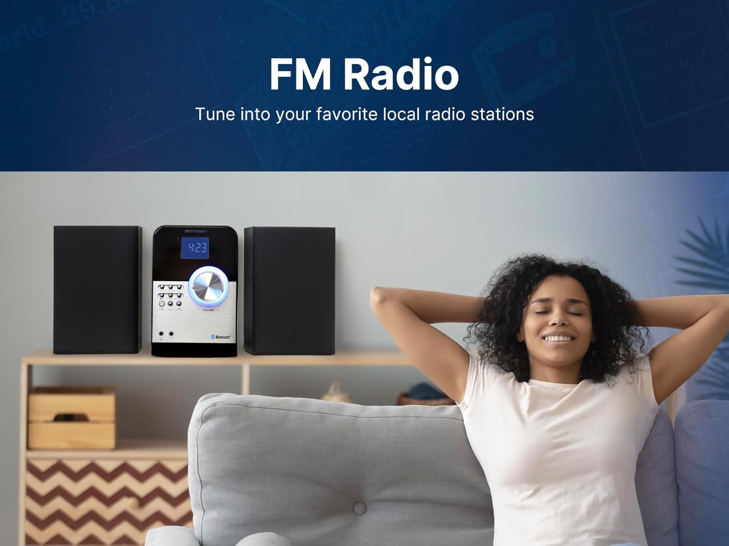 Image: A person enjoying music, illustrating the FM Radio feature.