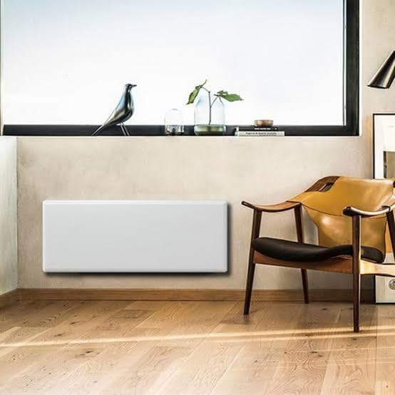 Image 1.1: The NOBO NTL4T 20 Electric Heater seamlessly integrated into a living room environment, mounted on a wall beneath a window.