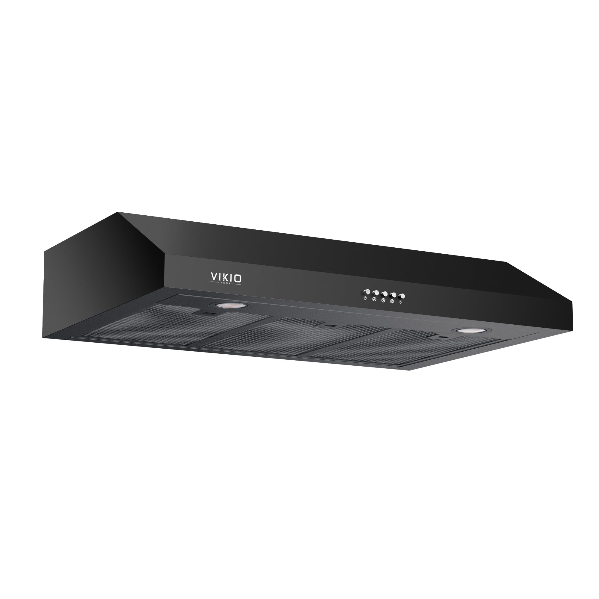 The VIKIO HOME RC10-30B range hood features user-friendly mechanical push-button controls for easy operation of its functions.
