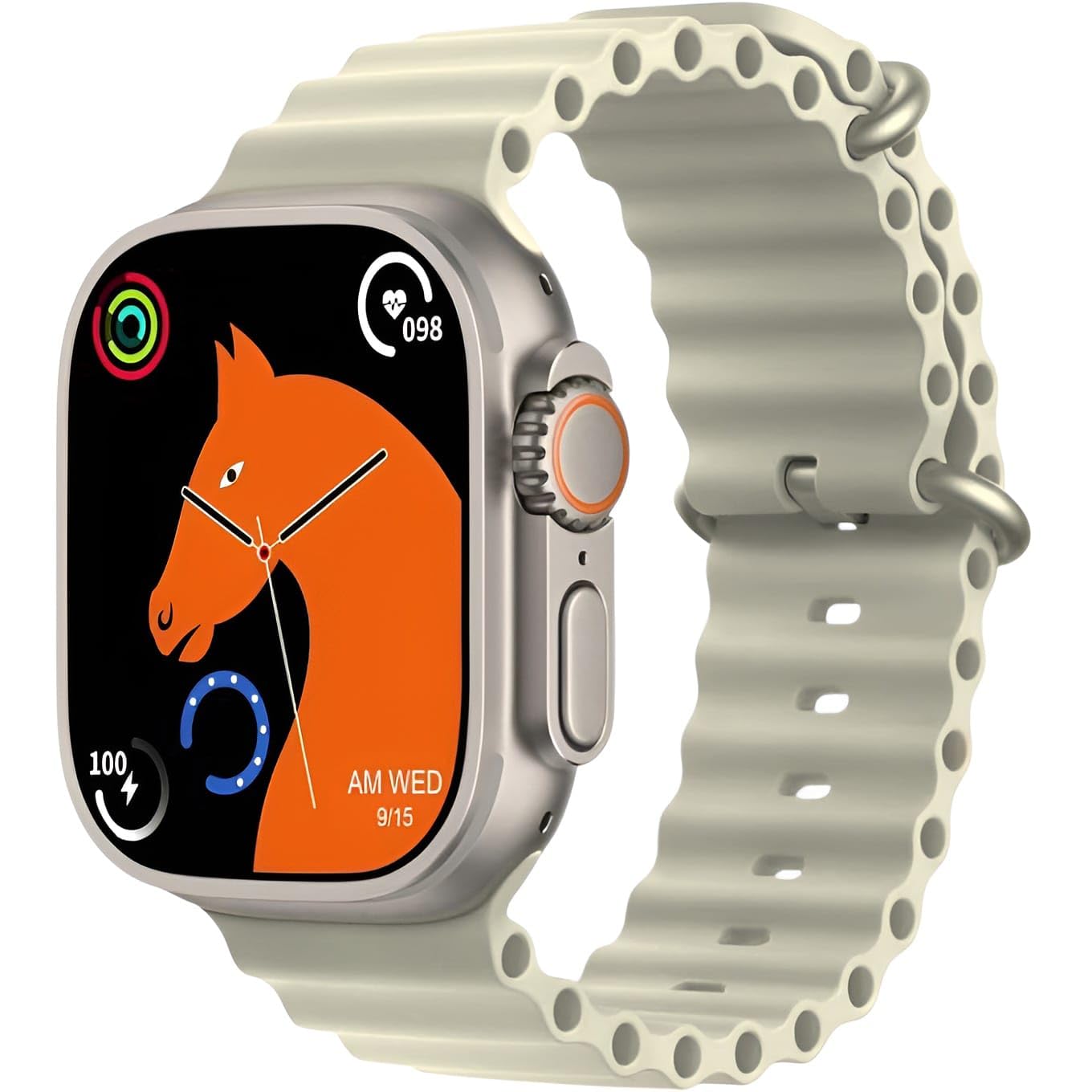 The T10 Ultra Smartwatch Series 8 features a 49mm stunning large screen and a durable aluminum body. It is designed to assist you with health monitoring, fitness tracking, and communication.