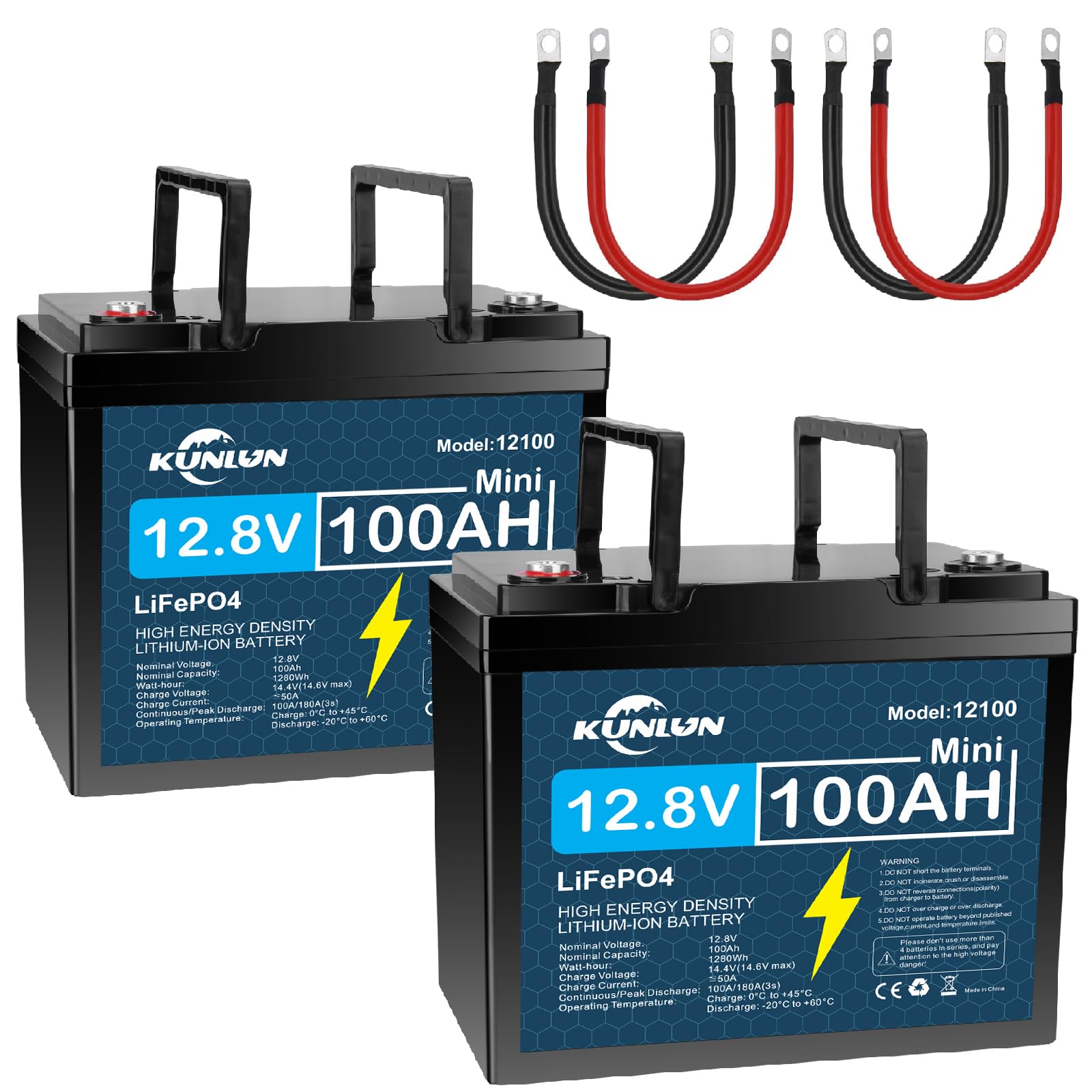 Image 1.1: KUNLUN 12V 100Ah LiFePO4 Battery, showcasing its compact design and integrated handles.