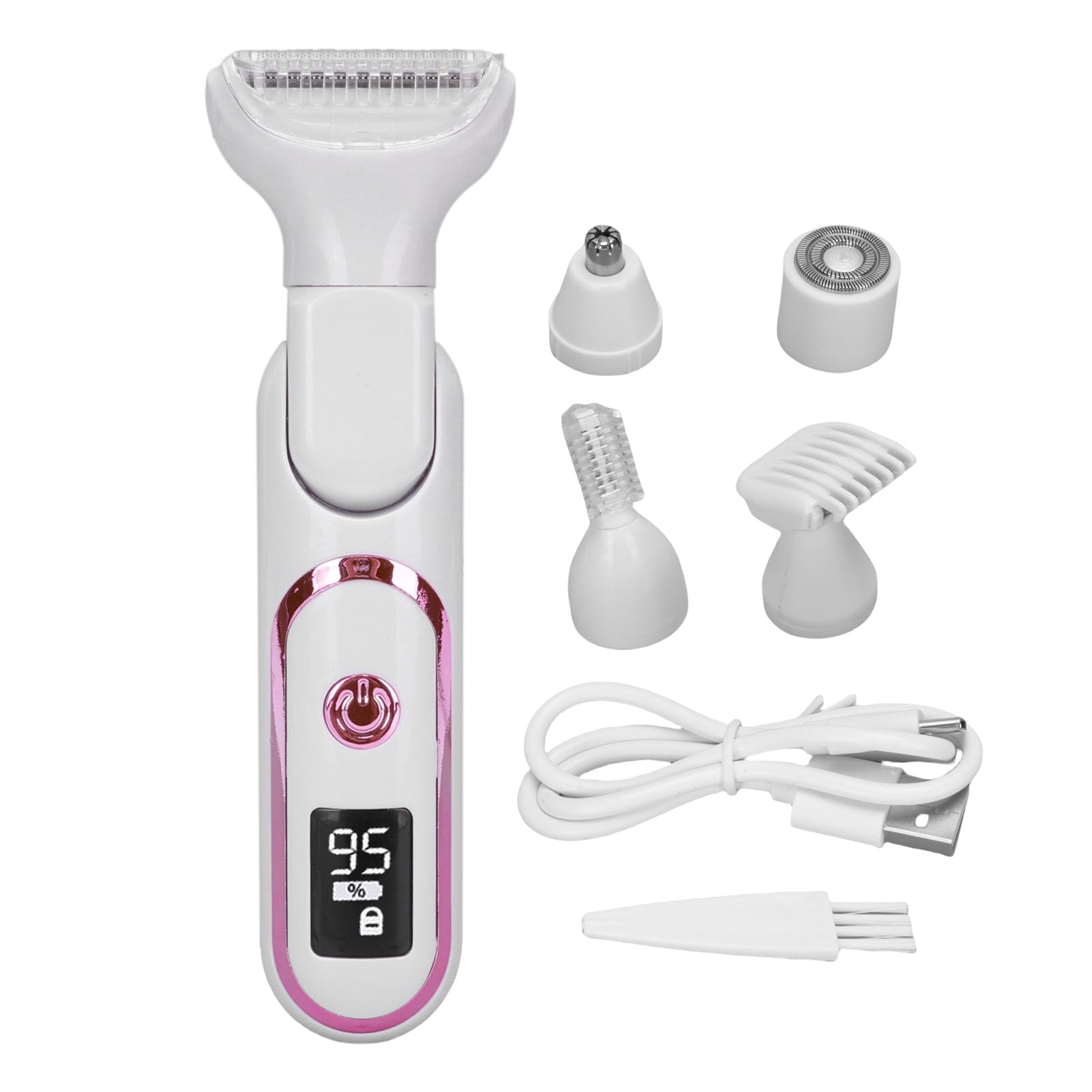 - Disseny multifuncional 5 en 1: This device includes five interchangeable heads for trimming eyebrows, nose hair, facial hair, underarm hair, arm hair, bikini parts, and thigh hair.