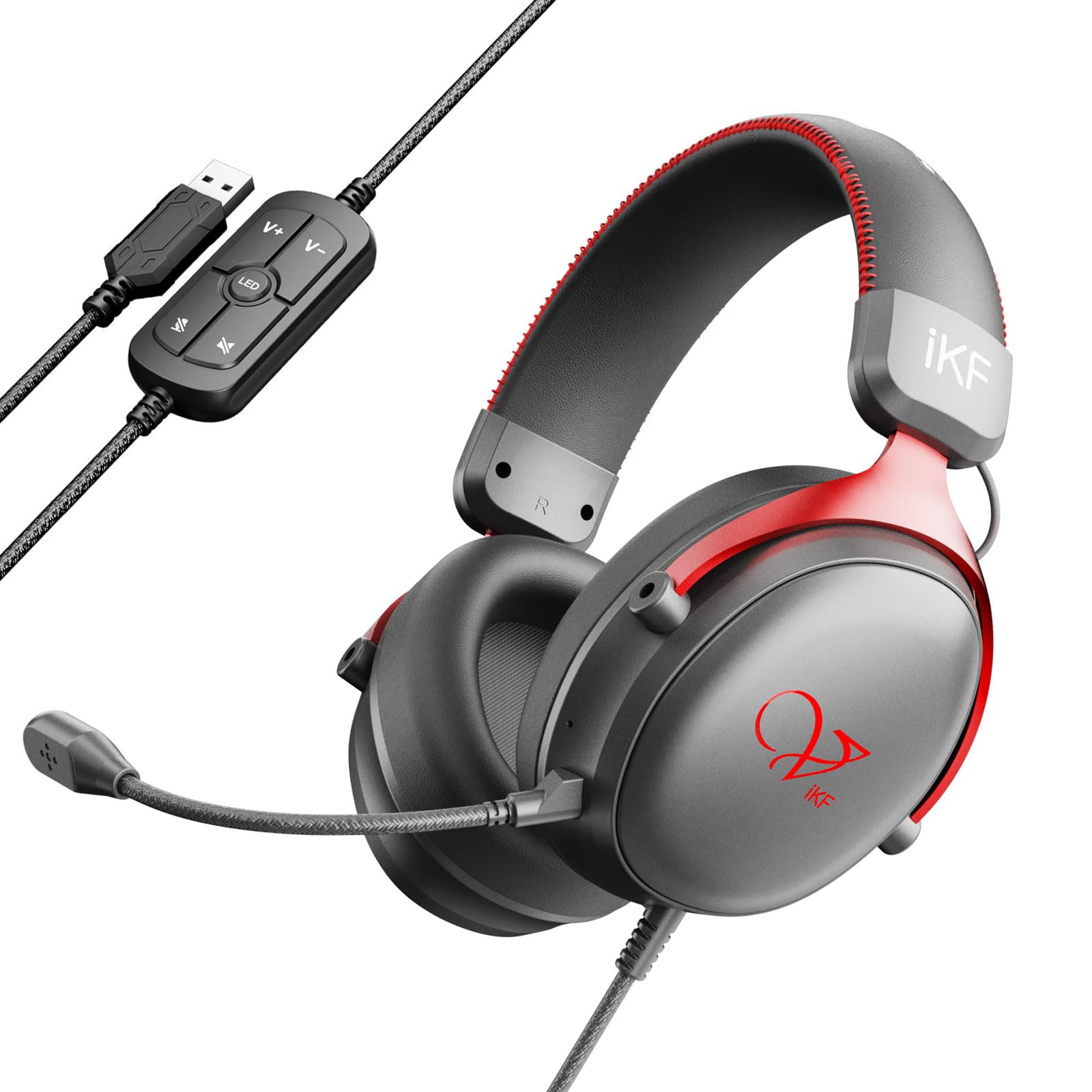 Image: The iKF V11 headset with its USB connector and inline control unit, demonstrating USB compatibility.