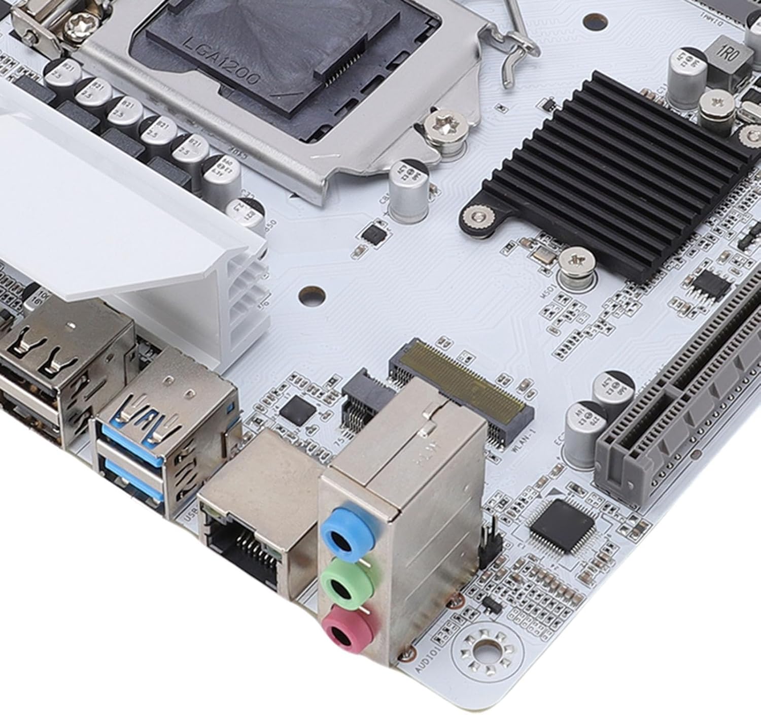 Figura 1.1: Acabatview of the ciciglow H510 ITX Motherboard. This image displays the compact layout of the motherboard, highlighting the CPU socket, RAM slots, and various connectors.
